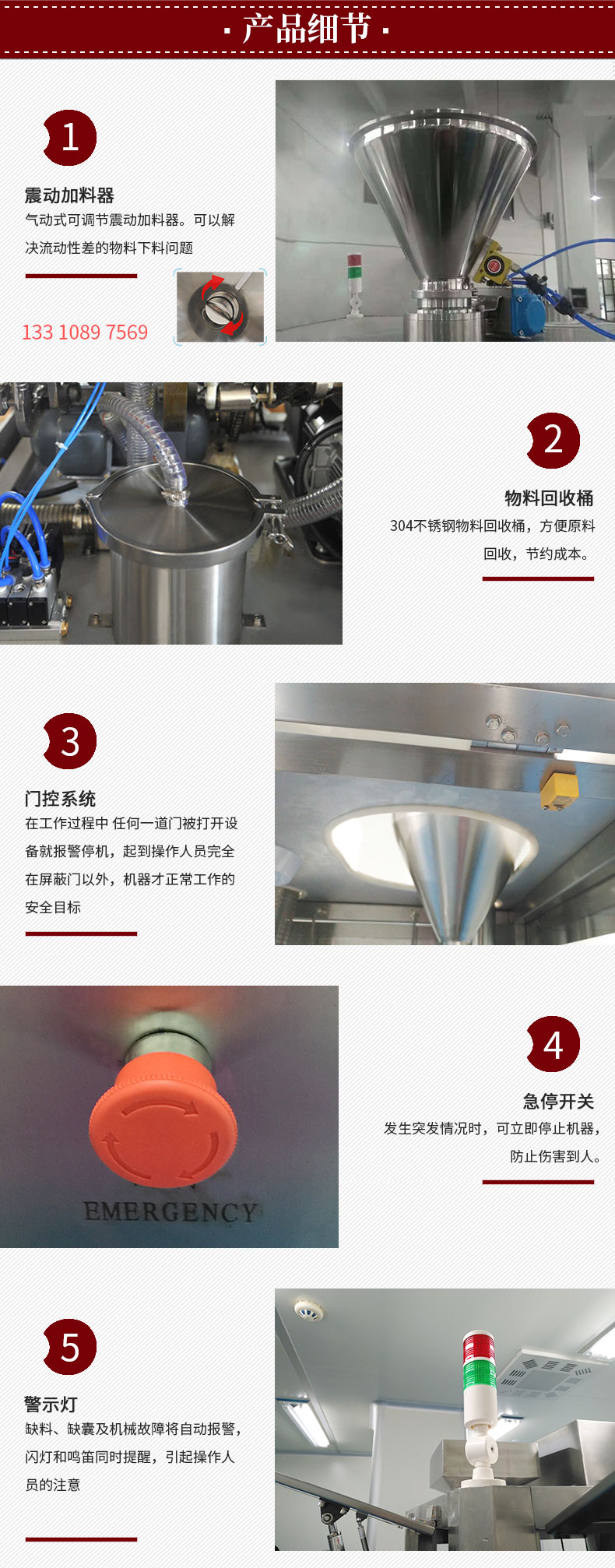 Capsule filling machine of Guangdong Rich Packing Packing Machinery Co. Ltd. has reasonable design,modular structure, easy operation and lower failure rate.Transverse biaxial adapt PTFE oil-less bearing, no need refueling; modular structure, equipped with jog operation, convenient maintenance and cleaning, replacement of mold only 15 minutes,our capsule filling machine is newest.When we are manufacture the capsule filling machines ,the filling rod, the upper and lower die holes, the measuring disk adapt non polar electronic polishing treatment, enhance the material fluidity, which has solved the problems of sticky of material, stick with mold and easy to absorb moisture. (According to the material properties and the special requirements of customers, Guangdong Rich Packing Machinry Co. Ltd can provide the Teflon coating processing service)